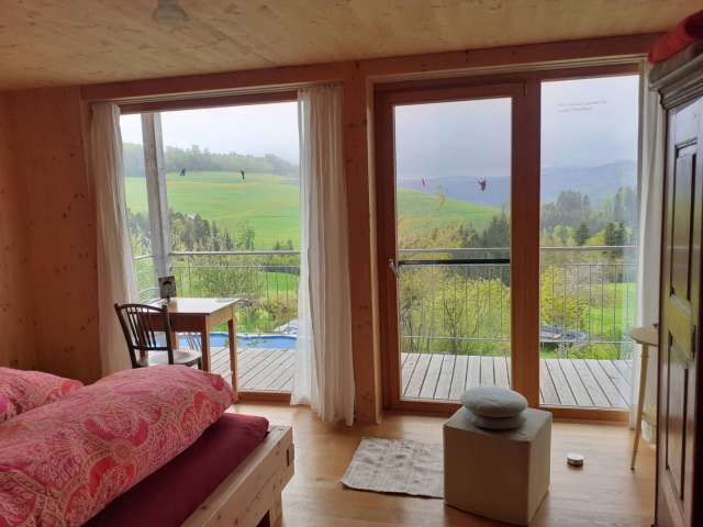 In authentischer landwirtschaftlicher Umgebung, nahe der wilden Flusslandschaften der Necker und der Thur, in denen man wunderbar baden kann, finden Sie hier viel Weitsicht. Ganz gleich, ob Sie zu Fuss oder mit dem Velo unterwegs sind (das Haus liegt an der E-Bike Herzroute und an einer sehr beliebten Velo- und Töff-Panoramaroute).