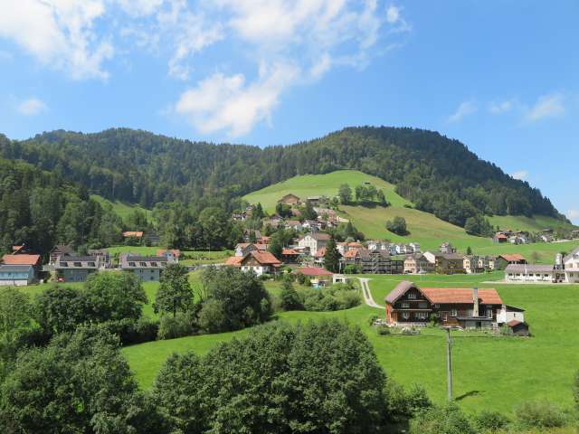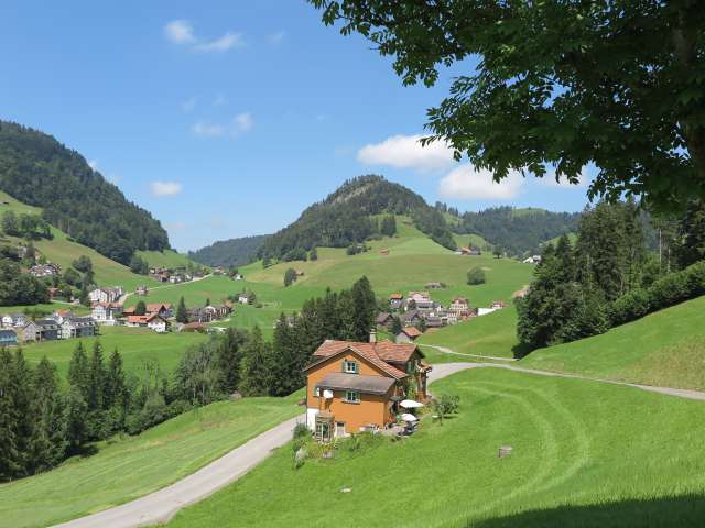 Dicken, ein ehemaliges Stickereidorf, gehört zur politischen Gemeinde Neckertal und hat ca. 350 Einwohner. Auf allen Seiten geht's über sonnenverwöhnte Hügel in die Höhe, was so manchen Wandervogel verzückt. Besonders stolz sind die Einheimischen auf die Wilkethöchi, ein lohnenswertes Aussichtsziel.