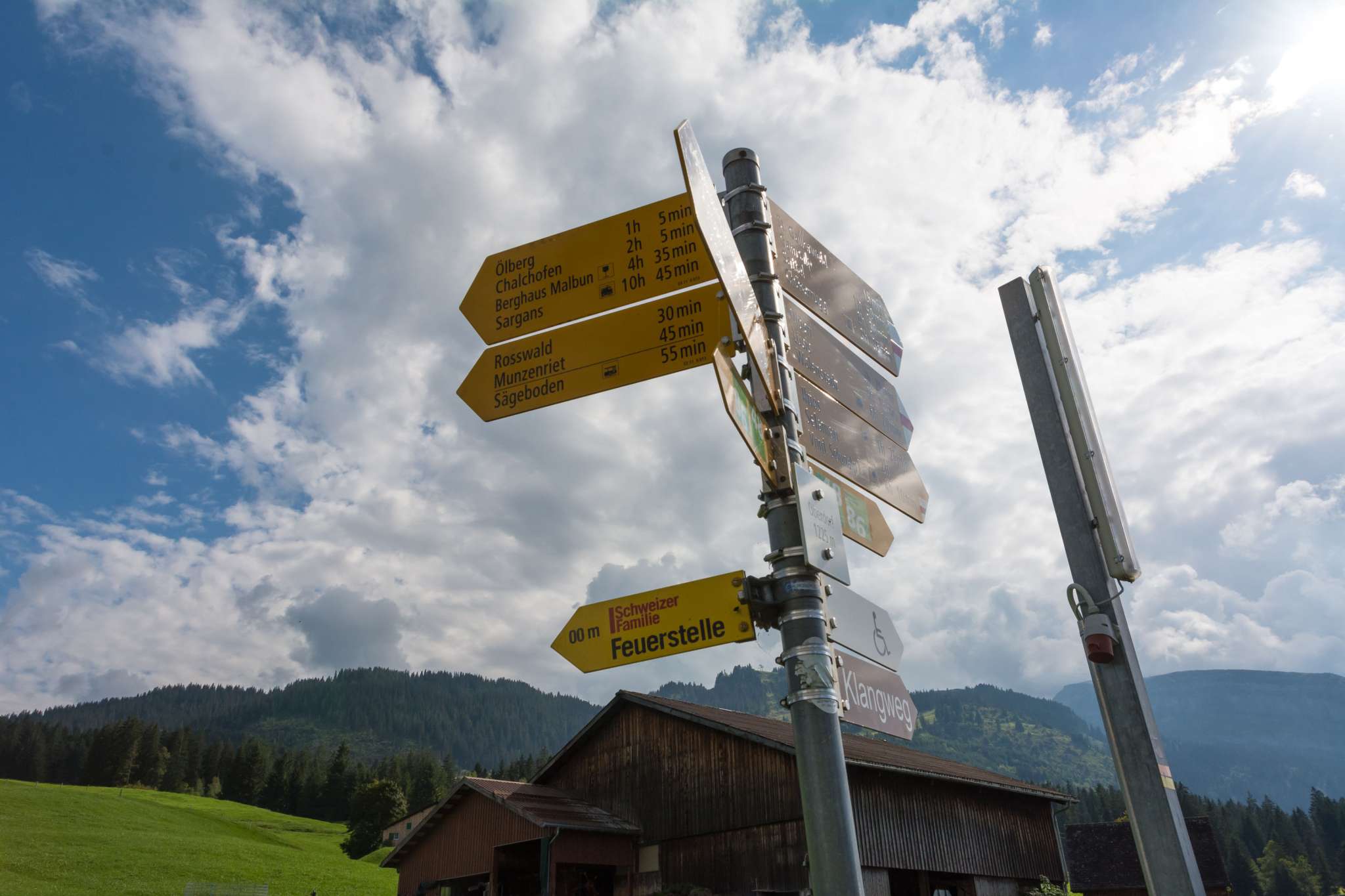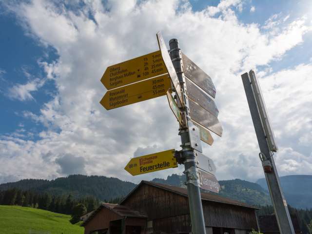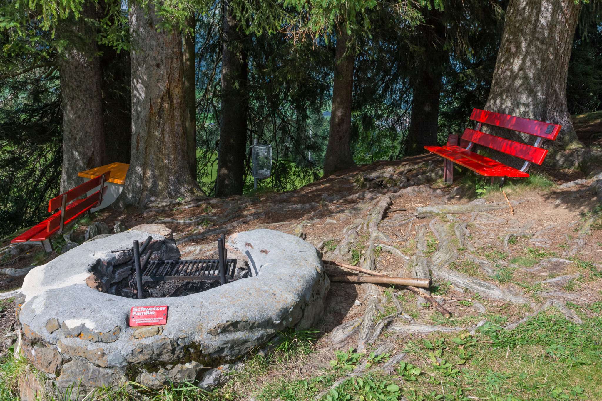 Die Feuerstelle der Schweizer Familie ist rund gemauert und verfügt über einen Rost, der in drei Stufen in der Höhe verstellt werden kann. Dafür sind aber Handschuhe notwendig. Insgesamt gibt es drei Bänke mit Lehne. In einer grossen Kiste findet man einen Holzvorrat. Man blickt Richtung Chäserrugg. Kinderwagentauglich: ja, Holz: ja, Trinkwasser: nein, WC: nein, Kapazität: ca. 12