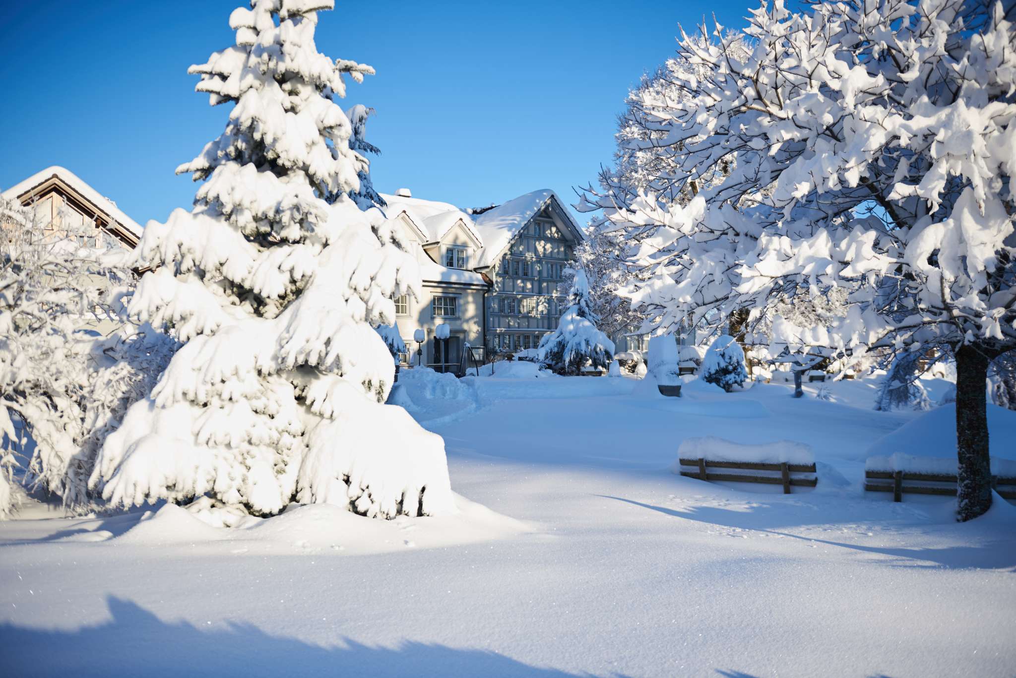 Der Wolfensberg, auf 900 Metern gelegen, bietet die fantastische Kulisse für das Hotel, das von einer eigenen Parkanlage mit Biotop umgeben ist und rundum eine grossartige Aussicht in die voralpine Landschaft bietet. Es ist der idyllische Ausgangspunkt für lauschige Spaziergänge in den umliegenden Wäldern, Wanderungen und Ausflüge. Beispielsweise ins nahe gelegene St.Gallen, dessen Klosterviertel unter UNESCO-Schutz steht, oder ins Appenzellerland mit seinem einzigartigen Alpsteinmassiv.