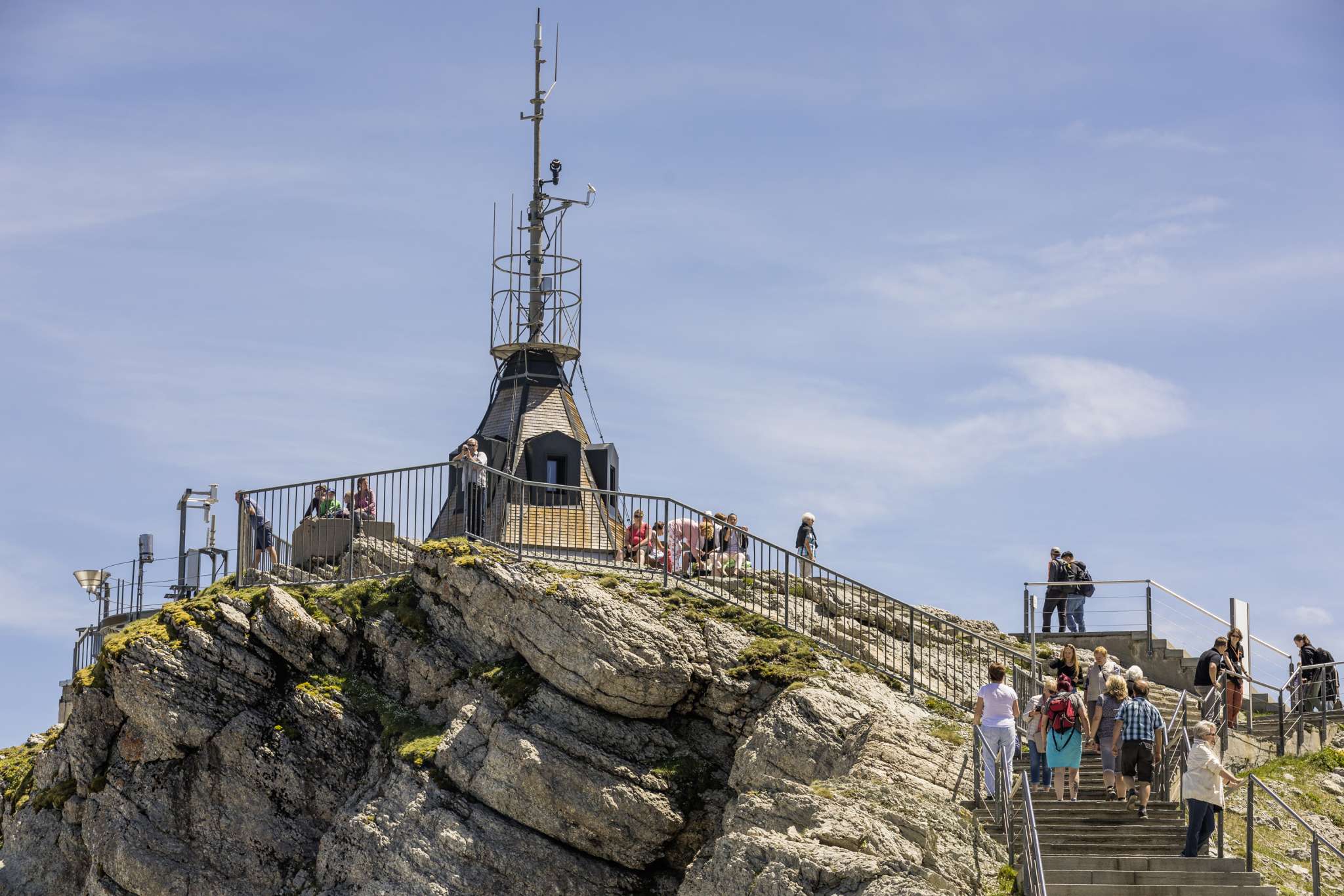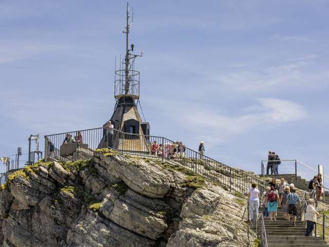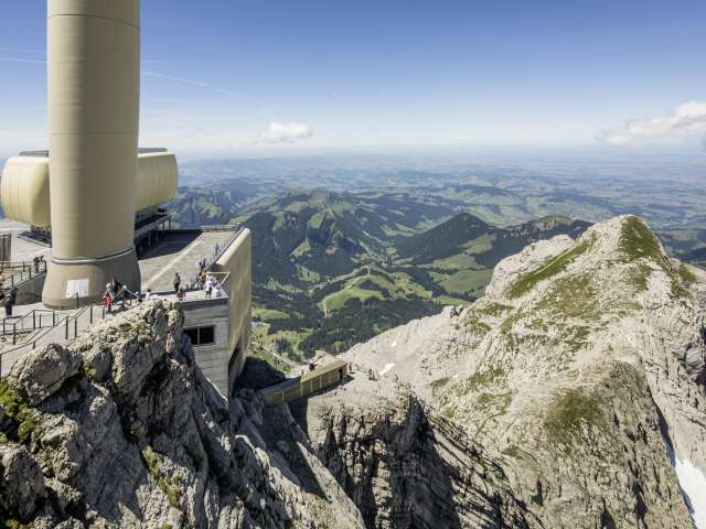 Der Säntisgipfel liegt 2502 Meter über Meer und ist damit der höchste Punkt des Appenzellerlandes. Kulinarisch verwöhnen lassen kann man sich hier aber genauso wie im Tal, sei es im bedienten oder im Selbstbedienungs-Bereich des Restaurants. Gerichte unter dem Titel «Appenzeller Hochgenuss», aber auch Alpenländer Spezialitäten sind auf der Karte zu finden. Ein empfehlenswertes Angebot ist das umfangreiche Frühstücksbuffet, das im Kombi mit der Bahnfahrt gelöst werden kann.