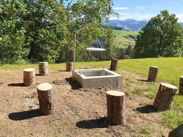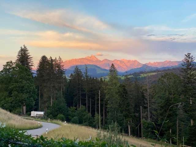 Hoch über Wattwil, auf dem Hügel mit grandioser Sicht auf Alpstein und Churfirsten, befindet sich eine Campingwiese für Wohnmobile oder Zelt.